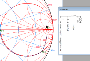 上图:s11带宽更宽,IN端是从匝数更多,线匝更紧密的一边入的。(想必电容偏小了一些,虽然谐振都是100Mhz,但是L偏大,匝数多,匝间距小,Q小,Q小是不是造成带宽更宽一些。)当然整体看是串联,但是板子的布局,包括线圈之间的耦合,分布电容电感,都不是绝对对称的。只能说从L较大的这边入时,造成了Q低,带宽较宽的这样的结果。