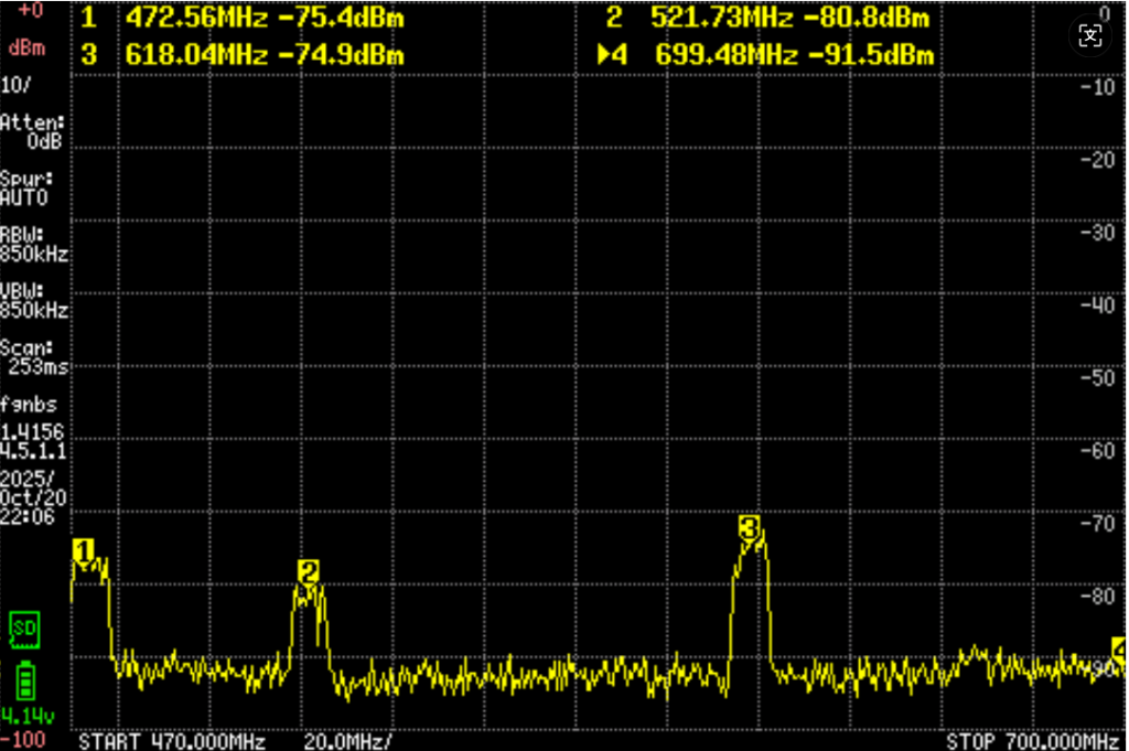 用频谱仪测试,发觉最大-73,-75,最小到-80。