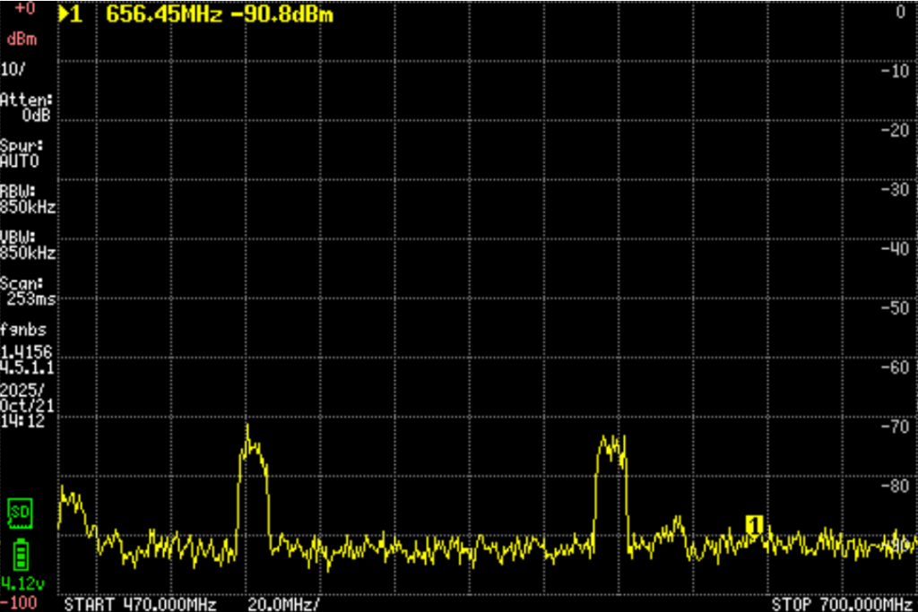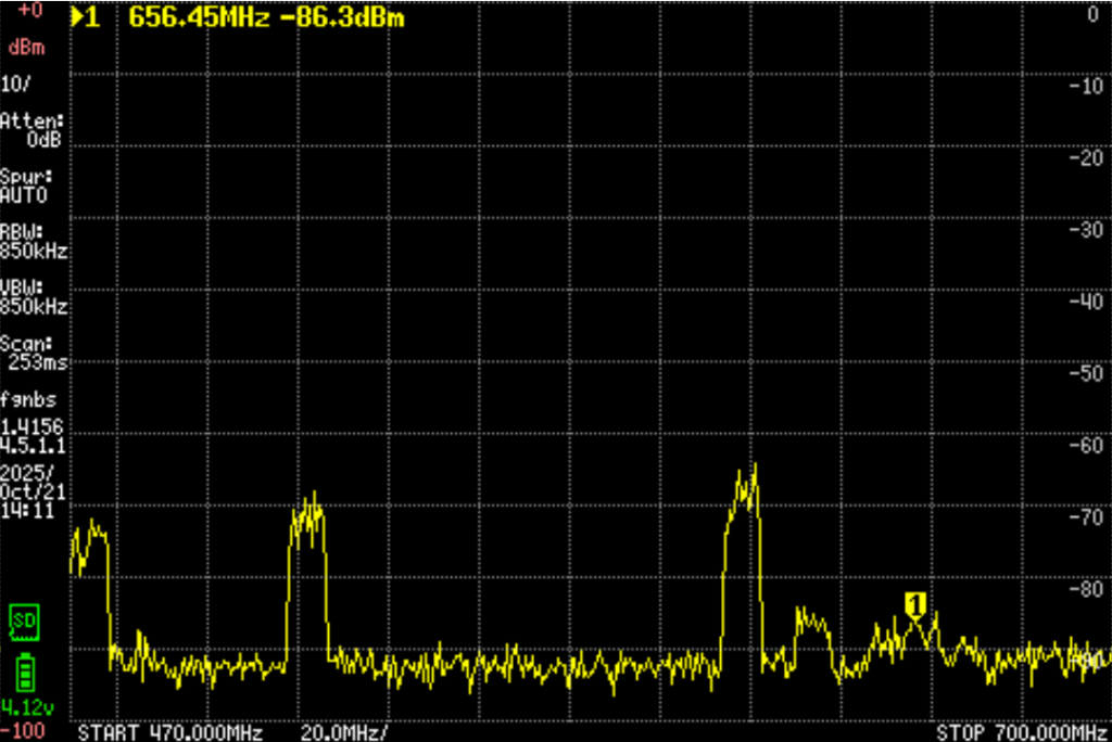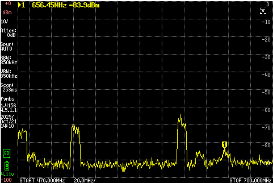 今天到一个山上去游玩,带了频谱仪测试场强。发现以下问题。