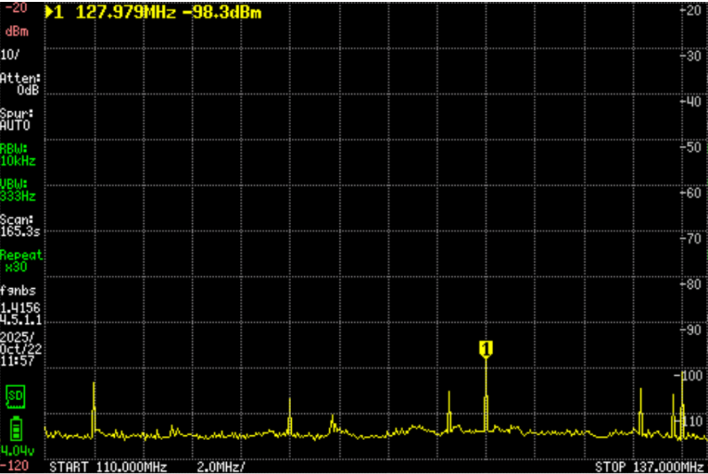 这个范围的干扰是很小的。因为强制航空安全的需要。可以看到这一个波段没有杂散。杂散不敢到这里来。这样的质量为本波段的远程接受和放大提供了条件。