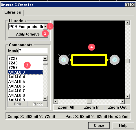 而且初学者也不熟悉我们要用什么封装。比如一般的直插电阻到底在库里面是什么封装呢?